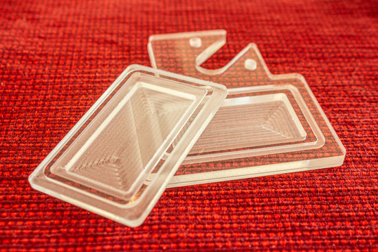 A small dab of silicon is added to the magnet for cushioning and to lock it in place, then the enclosure is solvent welded. Notice the grooved joint has completely disappeared - creating a visually verifiable uninterrupted acrylic seal on all our magnet enclosures.
