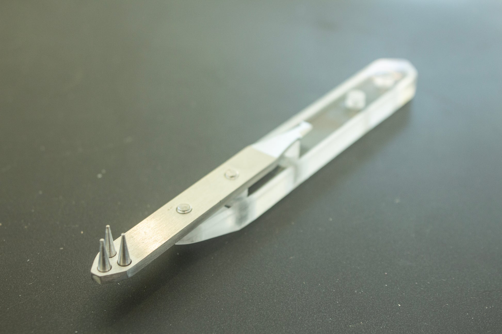 A purpose-designed tool for cleaning pests and algae off rocks, snails, corals, and more. One end of the tool is for sniping pests in-tank and cleaning snails, frags, or corals - with a nimble hook end and scraping blade. The other end of the tool is a three-spike rasping end for large scale, medieval removal of vermatids and stubborn algaes. For algae, by rasping off the surface of the rock or coralline to which algaes like bryopsis are attached, the removal is more complete - compared to other methods which leave algae behind to regrow.