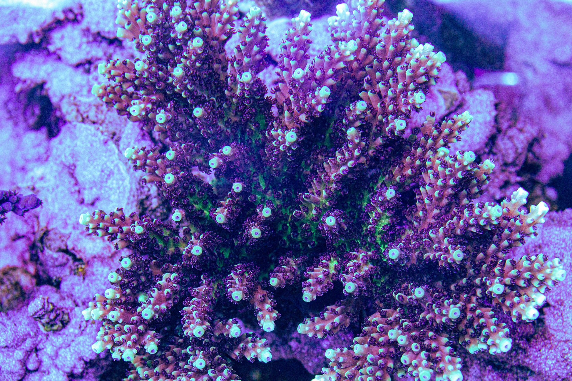 Frags are 1-2", SuperFrag 3"+, and colony is about 5"x4"x4"